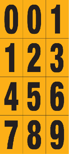 - Combinatiecijfers 0 t/m 9 op vel om bijvoorbeeld aanduidingen te maken in een magazijn.