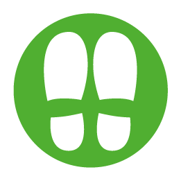 De groene Voeten vloersticker is een pictogram dat kan worden gebruikt om een looproute uit te stippelen op uw locatie. Deze groene sticker met de afbeelding van witte voeten geeft duidelijk aan waar een persoon moet gaan staan of heen moet lopen.